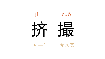 引《金瓶梅词话》第六五回:“我但开口,就説咱们挤撮他。”《金瓶梅词话》第八一回:“要挤撮俺两口子出门,也不打紧。”