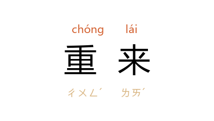 引晋 陶潜 《杂诗》之一:“盛年不重来,一日难再晨。”宋 秦观 《望海潮·洛阳怀古》词:“兰苑未空,行人渐老,重来事事堪嗟。”刘大白 《丁宁·春雪》:“让寒飙卷将冻雨,重来称霸。”