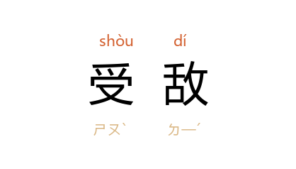 引银雀山 汉 墓竹简《孙膑兵法·善者》:“善者,敌人军□人众,能使分离而不相救也,受敌而不相知也。”《周书·李迁哲传》:“迁哲 谓其众曰:‘纳降如受敌,吾观其使视瞻犹高,得无诈也。’”
