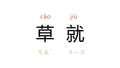 引《东周列国志》第一〇三回:“使者去后, 樊於期 草就檄文。”孙中山 《<民族主义>自序》:“《民族主义》一册,已经脱稿,《民权主义》、《民生主义》二册亦草就大部。”叶圣陶 《倪焕之》二八:“他带着好几天前草就的乡村师范的计划,从这个集会里出来,又参加到那个集会里去,却始终没有机会提出他的计划。”