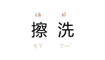英语to clean (with water or alcohol), to wipe and wash, to swab, to scrub
