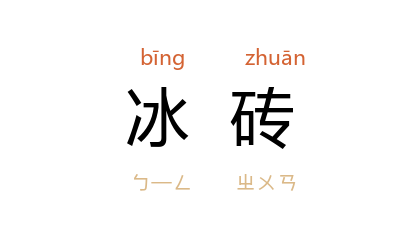 ⒉ 一种冷冻食品。把水、奶油、糖、果汁等物搅和,在低温下冻成的砖形硬块。