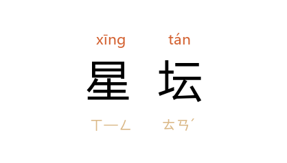 引唐 牟融 《寄羽士》诗:“乐道无时忘鹤伴,谈玄何日到星坛。”唐 陶翰 《望太华赠卢司仓》诗:“葱蘢记星坛,明灭数云嶂。”明 无名氏 《四贤记·寻亲》:“则索要投僊境,扣星坛,觅取他同上归槎也。”