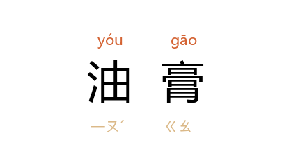 ⒈ 用于皮肤的软膏,特指含脂类或油脂类物质(如凡士林、猪油、羊毛脂)为基质的半固体药物制剂。