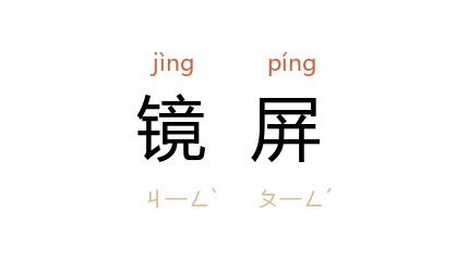 引宋 秦观 《寄题赵侯澄碧轩》诗:“捲帘几砚成图画,倚槛鬚眉入镜屏。”清 沉初 《西清笔记·纪庶品》:“懋勤殿 向设一大镜屏,岁值铜价涌贵,上命撤以付钱局鼓铸。”