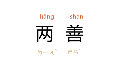 引《后汉书·皇后纪上·明德马皇后》:“太后报曰:‘吾反覆念之,思令两善。岂徒欲获谦让之名,而使帝受不外施之嫌哉!’”王先谦 集解引《资治通鉴》 胡三省 注:“两善,谓国家无滥恩,而外戚亦以安全也。”《新唐书·郭子仪传》:“吐蕃 本吾舅甥国,无负而来,弃亲也。马牛被数百里,公等若倒戈乘之,若俯取一芥,是谓天赐,不可失。且逐戎得利,与我继好,不两善乎?”