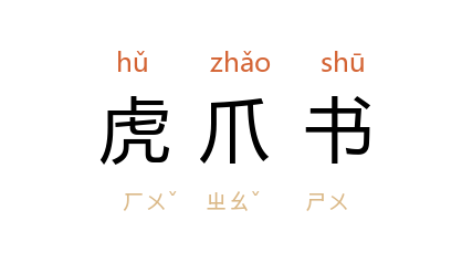 引晋 挚虞 《决疑要注》:“尚书臺召人,用虎爪书,告下用偃波书,皆不可卒学,以防矫诈。”唐 段成式 《酉阳杂俎·广知》:“百体中有悬针书……虎爪书、倒薤书、偃波书。”唐 韦续 《墨薮·五十六种书》:“虎爪书者, 王僧虔 拟龙爪书所作也。”清 袁枚 《随园随笔·官职上》:“六朝 宋 齐 之间,尚书臺文檄有二体,召人用虎爪书,告下用偃波书,取其不能仓猝书成,所以防姦伪也。”