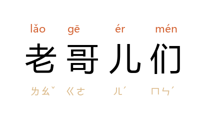 例如:「大家都已是老哥儿们了,还客气些什么!」