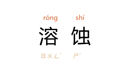 ⒈ 地面水或地下水对岩石中可溶性物质进行溶解和搬移的作用。溶蚀作用在石灰岩地区表现最为显著。