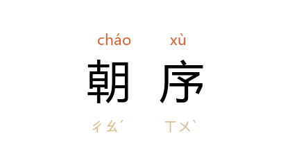 引《晋书·陆玩传》:“竟不能敷融玄风,清一朝序,咎责之来,於臣已重。”南朝 梁 江淹 《谢开府辟召表》:“阐耀世经,发丽朝序。”唐 罗隐 《与招讨宋将军书》:“自尔天子不忍重困百姓,由是官未实爵, 诸葛爽、安文祐 皆自盗而升朝序也。”《明史·孝宗纪赞》:“孝宗 独能恭俭有制,勤政爱民,兢兢於保泰持盈之道,用使朝序清寧,民物康阜。”