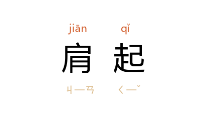 ⒉ ;特指在肩膀上斜放(如一条枪)