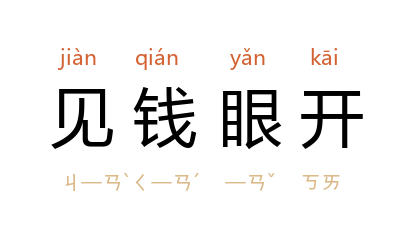 ⒈ 形容人贪婪爱财,唯利是图。也作「见钱眼红」。