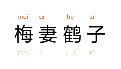 ⒈ 宋代林逋隐居杭州西湖孤山,无妻无子,种梅养鹤以自娱,人称“梅妻鹤子”。