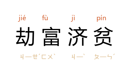 ⒈ 亦作“刼富济贫”。亦作“刦富济贫”。夺取富人财产救济贫苦者。在封建社会里是农民起义的一种斗争形式或口号。