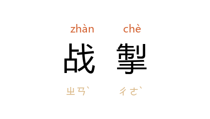 ⒈ 颤动拖拽。国画的一种笔法。也叫“颤掣”。
