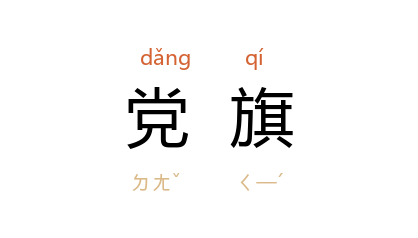 ⒈ 代表一个政党的旗帜。中国共产党的党旗是左上角有金黄色的镰刀和铁锤的红旗。