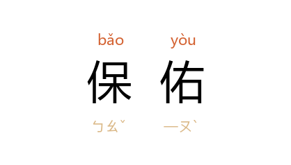 ⒈ 见“保佑”。亦作“保右”。亦作“保祐”。保护帮助。多指神力的护卫帮助。