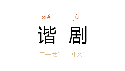 ⒉ 一种介于曲艺与戏剧之间的艺术样式。流行于 四川。演出时只有一名演员出场,扮演规定人物,通过演员与实际不存在的对象进行“对话”和交流,使观众明确角色的规定情境和假设在场的其他人物,以表达一定的故事情节。因运用幽默、风趣见长的 四川 方言,寓庄于谐,故名谐剧。