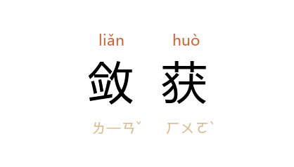 引唐 元稹 《赛神》诗:“楚 俗不事事,巫风事妖神……家家不敛穫,赛妖无富贫。”《新唐书·食货志一》:“配租以敛穫蚤晚、险易、远近为差。”宋 苏辙 《次韵子瞻送千乘千能》:“躬耕遇敛穫,不知以为欢。”