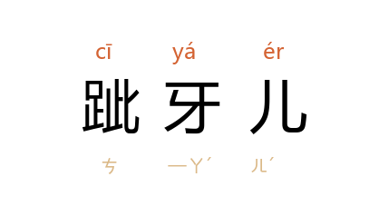 引《儿女英雄传》第十二回:“﹝ 安驥 ﹞跐牙儿不住的儍笑。”