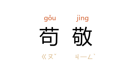 ⒈ 谓不必过于恭敬。《仪礼·聘礼》:“燕则上介为宾,宾为苟敬。”王引之《经义述闻·仪礼》:“是苟敬有崇恩杀敬之义。”一说“苟”当为“茍”,上从羊省,非从艹,读若棘。