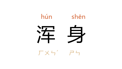 ⒈ 全身。也作「混身」。