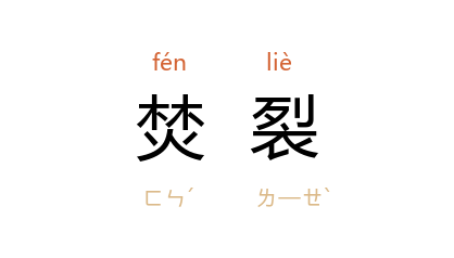 ⒉ 烧灼碎裂。形容极端痛苦。