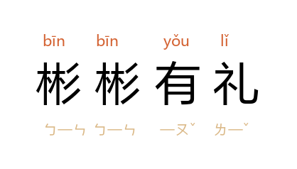 例如:「他对人彬彬有礼。」