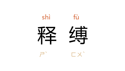 引蔡东藩 《南北史通俗演义》第五六回:“﹝ 高澄 ﹞待了半日,方见心上人儿,被军士押至……当即令军士释缚,载以良马,导入都中私第。”鲁迅 《坟·摩罗诗力说》:“﹝ 普式庚 《高加索累囚行》﹞中记 俄 之絶望青年,囚于异域,有少女为释缚纵之行,青年之情意復苏,而厥后终于孤去。”
