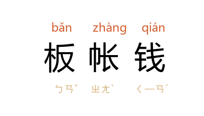 引《宋史·食货志下一》:“又有所谓板帐钱者,亦军兴后所创也。如输米则增收耗剩,交钱帛则多收糜费,幸富人之犯法而重其罚,恣胥吏之受賕而课其入……他如此类,不可徧举。”亦省称“板帐”。 宋 叶适 《上孝宗皇帝札子》:“大抵经总制钱为州之害,月桩、板帐为县之害。”宋 叶适 《朝议大夫蒋公墓志铭》:“江 东白收板帐, 湖 南倍折冬苗。”