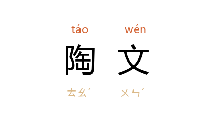 ⒈ 刻或印在陶器上的文字。原始社会末期的陶器已有刻画符号,今日所见陶文,以战国时期的数量为最多。