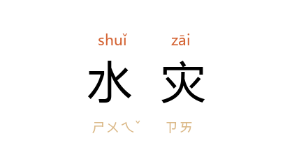 ⒈ 亦作“水菑”。因久雨、山洪暴发、河水泛滥等原因而造成的灾害。
