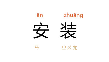 例如:「安装电话」、「安装天线」、「机器一安装好,马上就可以开工。」