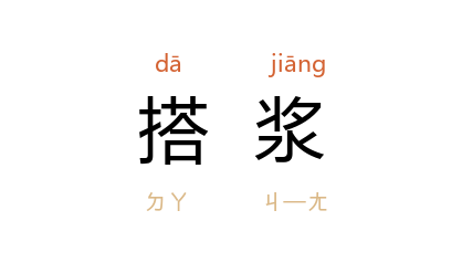 引《官场现形记·第八回》:「陶大人吃酒,菜是要好的,交代本家大阿姐,不要搭浆。」
