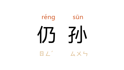 引《尔雅·释亲》:“晜孙之子为仍孙。”《旧唐书·白居易传》:“白居易 字 乐天,太原 人。 北齐 五兵尚书 建 之仍孙。”宋 赵彦卫 《云麓漫钞》卷六:“此帖流传至於 智永,右军 仍孙也。”
