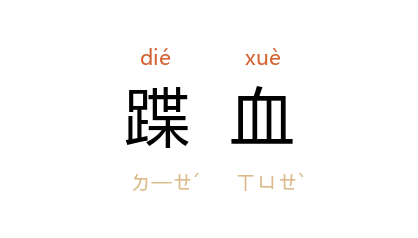 ⒈ 形容杀人众多,血流成河,遂踏血而行。也作「喋血」、「啑血」。