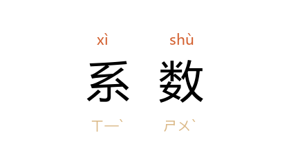 ⒈ 讨论数学问题时,在与特定的变量(或未知函数)及其导数有关的表达式或方程中,与未知数相乘的已知函数或常数称为系数。在物理学、工程技术及其他方面,也广泛使用系数这一名词。如一个量的部分值与总值之比,或一个量的变化与另一些量的变化之间关系式中的某些有关的数,都称系数。这时在系数之前常冠以有关现象或事物的专名,如“膨胀系数”、“石炭酸系数”等。