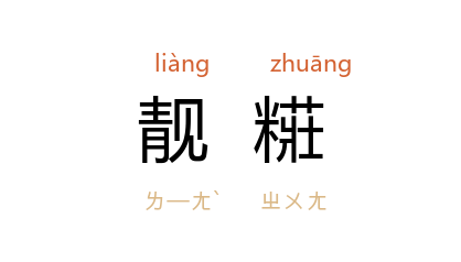引《文选·司马相如<上林赋>》:“靚糚刻饰,便嬛绰约。”郭璞 注:“靚糚,粉白黛黑也。”《旧五代史·唐书·朱友谦传》:“閽者夜见妇人数十,袨服靚糚,僕马炫耀。”明 宋濂 《录客语》:“傍有一女,靚糚凭栏凝睇。”