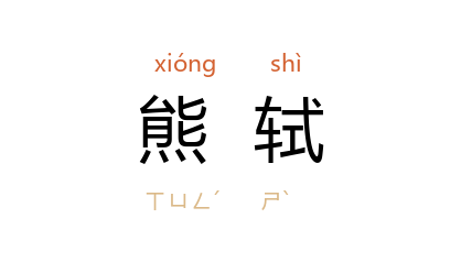 ⒈ 伏熊形的车前横木。因以指代有熊轼的车。古时为显宦所乘。