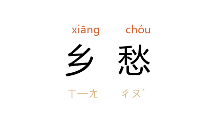 引唐 杜甫 《和裴迪登蜀州东亭送客逢早梅相忆见寄》:“幸不折来伤岁暮,若为看去乱乡愁。”明 常伦 《望山有怀故人》诗:“高高见西山,乡愁冀倾写。”冰心 《往事》二:“在她频频回顾的飞翔里总带着乡愁。”