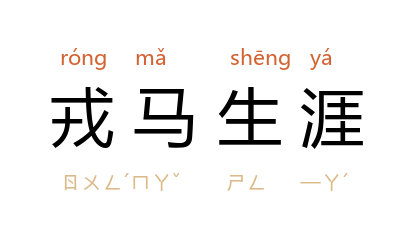 引袁鹰 《悲欢》:“对于几十年戎马生涯的老战士……还有什么比这更使人豪情奔放、热血沸腾的呢?”顾笑言 《爱情交响诗》第一乐章:“我的父亲,那位身经百战的将军,在他前半生的戎马生涯中,几乎是战无不胜的。”