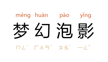引《金刚般若波罗蜜经·应化非真分》:“一切有为法,如梦、幻、泡、影,如露,亦如电,应作如是观。”