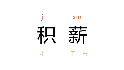 ⒈ 积聚木柴。指积聚的木柴。《汉书·汲黯传》:“黯褊心,不能无少望,见上,言曰:‘陛下用群臣如积薪耳,后来者居上。’”后以“积薪”喻选用人才后来居上。喻后来居上。《汉书·贾谊传》:“夫抱火厝之积薪之下而寝其上,火未及燃,因谓之安,方今之势,何以异此!”后以“积薪”喻隐伏危机。