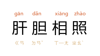 引《幼学琼林·卷二·朋友宾主类》:「肝胆相照,斯为腹心之友。」