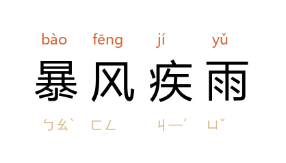 引《清史稿·灾异志三》:“﹝ 同治 ﹞三年六月初十日, 定海 暴风疾雨,坏各埠船,溺死兵民无数。”郑振铎 《海燕》:“小小的燕子,浩莽的大海,飞着飞着,不会觉得倦么?不会遇着暴风疾雨么?我们真替它们担心呢!”