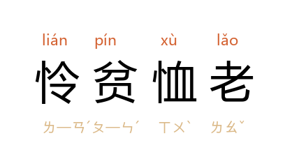 ⒈ 怜悯穷人,体恤老人。也作「怜贫敬老」、「怜贫惜老」。