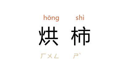 引宋 欧阳修 《归田录》卷二:“今 唐邓 间多大柿,其初生涩,坚实如石。凡百十柿以一榠樝置其中,则红熟烂如泥而可食。土人谓之烘柿者,非用火,乃用此尔。”明 李时珍 《本草纲目·果二·柹》:“烘柹,非谓火烘也。即青緑之柹,收置器中,自然红熟如烘成,涩味尽去,其甘如蜜。”