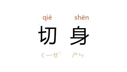 ⒉ 与自身密切相关。宋·朱熹〈答程正思书〉:「朝夕点检,是切身之急务。」也作「切己」。