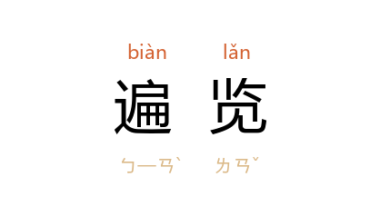 引唐 白居易 《和刘郎中<望终南山秋雪>》:“遍览古今集,都无秋雪诗。”《宋史·司马光传》:“光 常患歷代史繁,人主不能遍览,遂为《通志》八卷以献。”