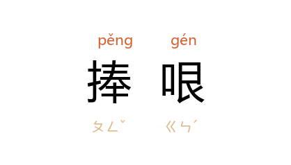⒈ 哏,相声的笑料。捧哏指相声中的配角以表情或搭腔方式来配合主角,逗人发笑。